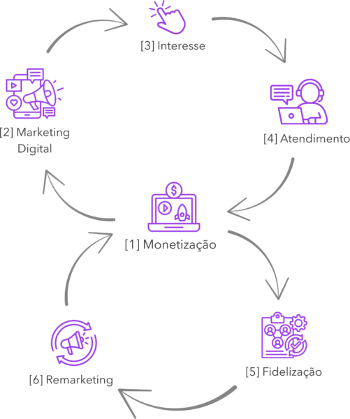 Estratégias online (tráfego pago, redes sociais, campanhas segmentadas) para atrair e engajar novos clientes continuamente.